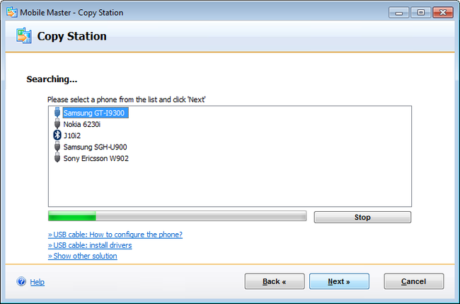 Mobile Master Copy Station scans automatically all USB and COM Ports, as well as Bluetooth and Infrarot for cel land smart phones.