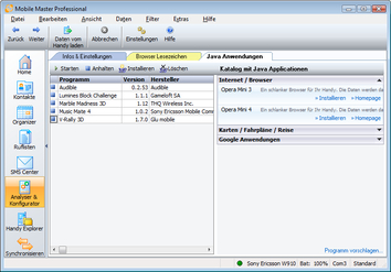 Or just drag & Drop a far or jad file to Mobile Master. Even links form the Internet Explorer or Firefox can be dragged & dropped to Mobile Master.