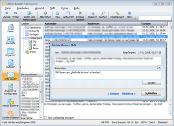 With Mobile Master you can organize your SMS in folders, and with rules Mobile Master puts your SMS in the desired folders automatically.